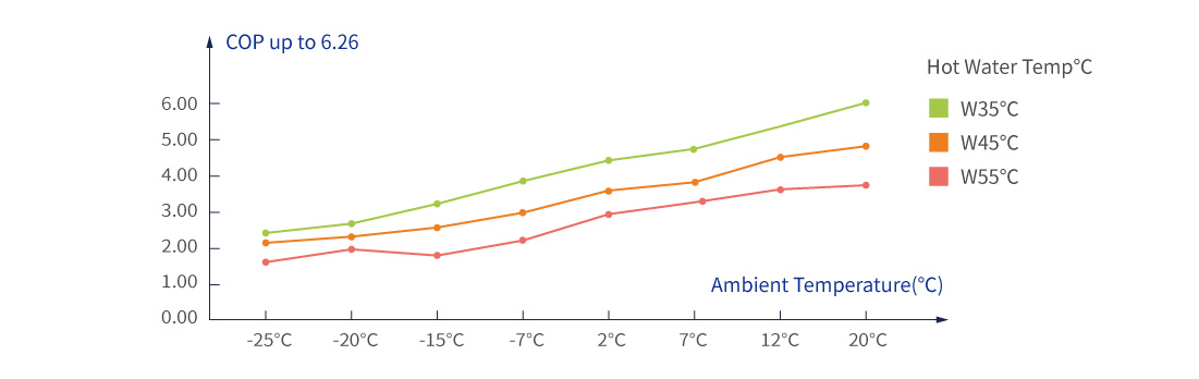 The unique control logic enables Sunspro Series to adjust the outlet water temperature intelligently, according to the real-time ambient temperature. Therefore, the heat pump can deliver heating, cooling, and domestic hot water at a constant temperature.