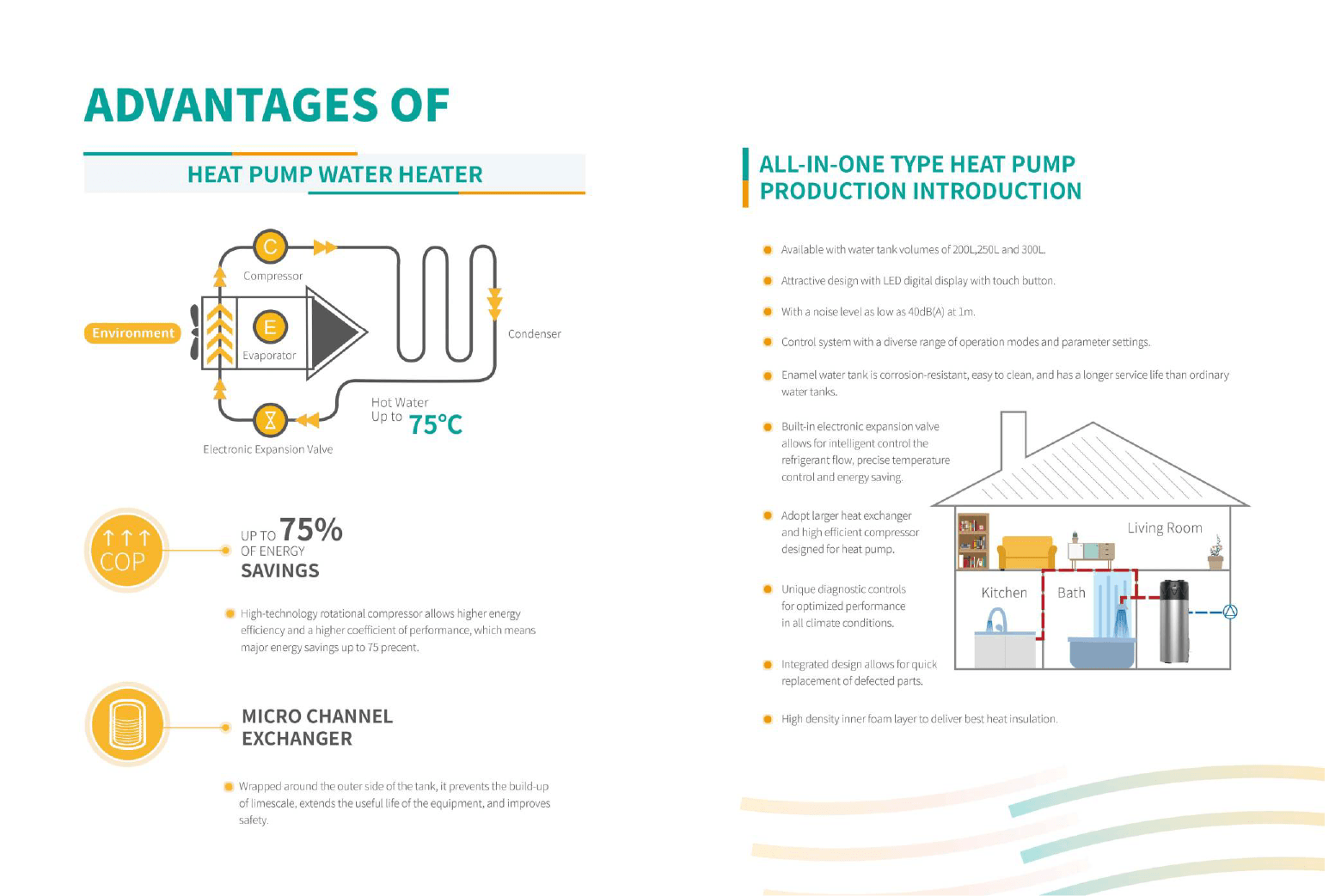 Hydrowave Series is a low-carbon system to provide domestic hot water for the house. With 75℃ high-temperature capacity and ErP Certified A+ level, the unit excellently fulfills the demands for instant water supply and a comfortable bathing experience.